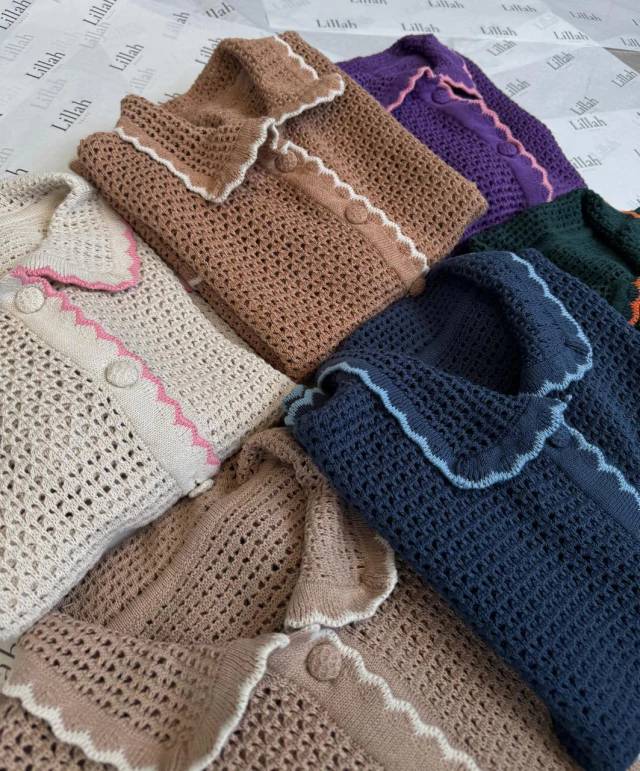 * Gola estruturada, botões forrados e acabamentos ondulados que trazem charme artesanal ao look.